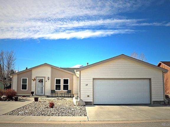 This is a beautiful manufactured home located in Casa Del Rio subdivision. 3 bedroom 2 bath home with a large two car garage! Casa DEL RIO HAS A MINIMUM AGE REQUIREMENT OF 45 YEARS AND OLDER.The kitchen is amazing with a large amount of cabinets and an island. Many updates to this home including all new windows, carpet, paint,, storm doors, gutters, ceiling fans, and a newer hot water heater. This home is in move in ready condition. A nice feature is a side yard with stone patio. Natural gas heat helps keep your energy costs low. You can walk to private access to the Arkansas River. HOA includes water, sewer, trash, snow removal, and landscaping. There is also a very nice club house you can take advantage of. World class fishing, hiking, and skiing is close by. The home has an open concept design and natural light is everywhere. Built in storage is located throughout home and garage. If you are looking for a comfortable home at an affordable price, come check out this new listing in Buena Vista.There is an additional two parking spaces next to home.