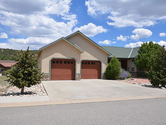 Amazing open floor plan in this beautiful home in a gated community 45+ with many amenities including a private walking trail by the Arkansas River. High end finishes throughout including Russian oak hardwood T/G flooring, solid wood cabinetry, granite countertops, stainless steel appliances, gas stove top, double ovens, two pantries, island eating with sink, huge master bedroom with two baths, walk in closet, amazing covered deck with skylights and mountain views from both the front and back decks and an oversized 2 car garage.