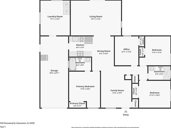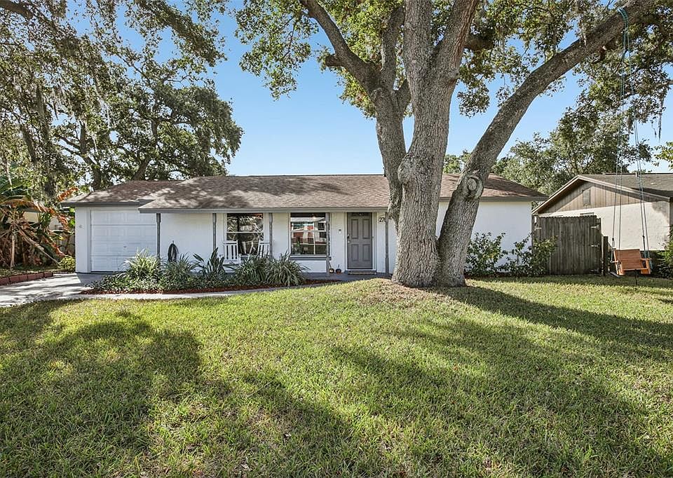 Move-in-ready Clearwater home combining updated interiors, a private fenced yard, and a central location close to parks, shops, and dining. The single-story concrete-block layout features four bedrooms, two full baths, and approximately 1,495 sq ft of living space. Recent neutral paint (2025) gives the home a fresh, cohesive look throughout. Inside, the home offers flexible living areas including a living room, dining area, and family room that opens through sliding glass doors to the backyard. A separate office (4th bedroom) provides additional space for work or hobbies. The interior laundry room includes built-in workspace and storage. The remodeled galley kitchen features white shaker cabinets, quartz countertops, stainless-steel appliances including range, refrigerator, and microwave (2020) plus dishwasher (2023) and updated fixtures. Both bathrooms have been renovated with contemporary tile, modern vanities, and stylish lighting. Laminate and tile flooring run through the main living areas and baths, while all bedrooms are carpeted for comfort. Outdoor living is a highlight with a paver patio, fire pit area, and mature oak trees offering shade and privacy. The fully fenced backyard provides room for entertaining, play, or pets. The front porch and concrete driveway lead to an attached one-car garage. Key systems include a 2018 architectural shingle roof, 2020 water heater, and 2014 HVAC system for peace of mind. With no HOA, and no CDD, the property offers flexibility for how you choose to enjoy your home. This Clearwater location provides convenient access to Safety Harbor, Dunedin, and Tampa Bay. Nearby amenities include Moccasin Lake Nature Park (0.4 mi), Cliff Stephens Park (.3 mi), Philippe Park (6.0 mi), and Del Oro Park (3.0 mi). Publix (1.1 mi), Clearwater Mall (1.7 mi), and Countryside Mall (3.5 mi) provide easy access to shopping and dining. Gulf beaches are about 8 miles away, with US-19 nearby for a quick commute to Tampa and St. Petersburg.