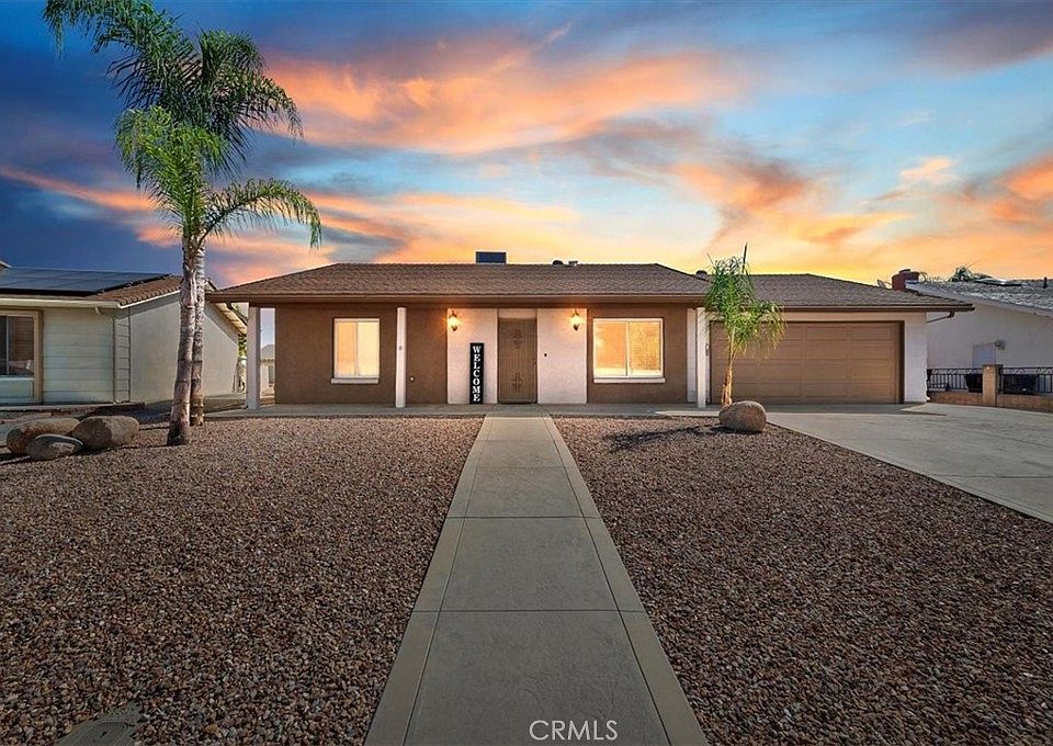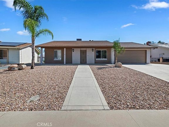 ***BEAUTIFULLY UPGRADED HOME in 55+ COMMUNITY in MENIFEE*** This Immaculate Home has 2 Large Bedrooms, 2 Baths, 2 Car Garage, 1328 Sq. Ft. with an additional separate Enclosed Room (200 Sq. Ft) off the main Family Room making this home much larger and a Whole House Fan throughout. Upon entering there is a formal Living Room leading to a Beautiful Kitchen with Countertop Seating, Upgraded white cabinetry, Granite Countertops overlooking the huge Family Room and Large Backyard. The Bonus Room is off the family room and is perfect for a dining room, pool table, craft or second family room. This bonus room has vents and a slider leading to the backyard and door to the garage. The Primary Bedroom is very spacious with two huge mirror sliding Closets, Vanity, private Remodeled Bathroom with Walk-In tile Shower and views of the Backyard. The second bedroom has a large Walk-In Closet and a door leading to the second Remodeled Bathroom with Walk-In Shower. The Backyard has lots of privacy trees and tons of room to build anything you can Dream up. The Community has many activities including, Pool, Spa, Clubhouse, Golf Course & Low Tax Rate.