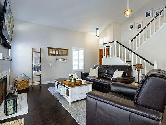 You've found it!! Clean, sharp, contemporary Rock Ridge home on huge lot at the end of a cul-de-sac with Pamplico Park across the street and easy access to almost everything! This 3 bedroom home showcases dark engineered wood floors and new baseboards, vaulted ceilings with upgraded fans and lighting. French doors open to the backyard from both the living room and dining room with phantom screens that disappear when not needed. The kitchen has plenty of storage and on trend onyx floors & double oven. The master bedroom is a restful retreat with private bath & nicely sized walk in closet. Enjoy sunset views of the surrounding hills from the windowed alcove. Two more bedrooms & a full bath complete the upstairs. The open design flows from one room to another and there is easy access to a large yard with an above ground spa, new sod, wrought iron fencing and wood patio cover with plenty of space still available for your own orchard or vegetable gardens. Sellers paid attention to details; newer doorknobs, all window screens replaced, upgraded cabinetry knobs, hardware, and freshly painted walls, ceilings & cabinetry in custom colors. 3 car garage includes man cave, plus parking for 7 cars just in the driveway! Bring your toys! Sale contingent on Sellers HOC