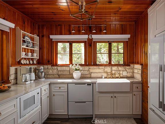 With a spacious two car garage, lake access, and a short walk to Lake Arrowhead Village, dining, shopping, and brewery, this home is a perfect blend of vintage allure and modern comfort, making it an ideal mountain retreat in an unbeatable location.
