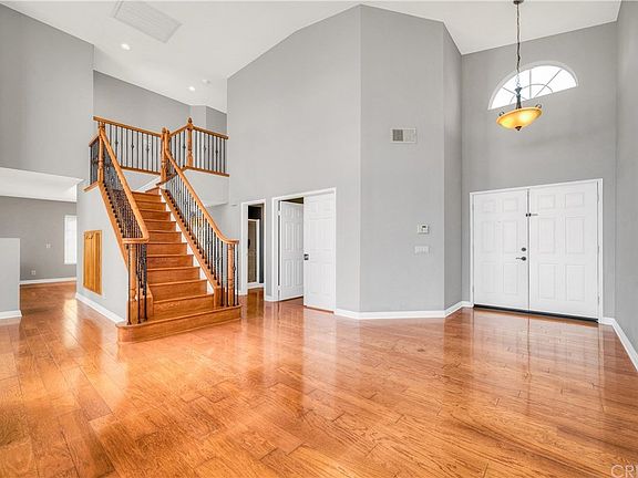 Beautiful California Bluffs home located on a tree lined street with an amazing view! Boasting vaulted ceilings, wood floors, raised baseboards, custom window treatments, fresh paint, wrought iron staircase, whole house fan, fireplace, indoor laundry room, 3 car garage, ceiling fans, custom built ins, and shows light and bright throughout. The eat in kitchen includes center island, stainless steel appliances, glass door cabinetry, and opens to the family for entertaining. Downstairs there is an office (used to be a bedroom) and full bathroom. Upstairs there are two additional bedrooms that share a J/J full bathroom and a large master bedroom which includes a private balcony with amazing views of the Valley. The remodeled master bathroom consists of two closets, custom cabinetry w/ dual sinks, generous oval tub, and walk in shower. Spacious backyard offers a covered patio, turf grass, dog run, privacy, and gorgeous views. Community offers award winning schools, pool, spa, tot lot, play ground, and two parks conveniently close to shopping and restaurants. Low HOA & no Mello Roos!