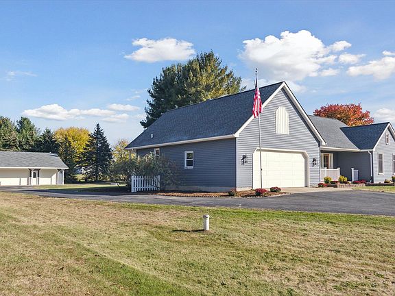 Welcome to 2768 64th St in beautiful Byron Center! This spacious 4-bedroom, 2-bathroom ranch home sits on a full acre, offering both tranquility and convenience. The open-concept main living area is perfect for entertaining, complete with cozy fireplace, built-ins and a bright kitchen featuring modern appliances, ample counter space, and an island for gathering. The main level includes three bedrooms, while the finished basement offers a fourth bedroom, ideal for guests or a home office. One of the home's standout features is the inviting 4-season porch, perfect for enjoying the outdoors year-round. The expansive backyard provides plenty of space for outdoor activities, gardening, or simply relaxing in a peaceful setting. In addition to the attached 2 stall garage, the property boasts a large outbuilding with heat, room for three more cars, and extra storage space ideal for hobbyists, a workshop, or additional storage. Located in the highly desirable Byron Center school district and close to shopping, dining, and parks, this home combines the best of suburban living with ample space for your lifestyle. Don't miss your chance to own this unique ranch in a prime location!