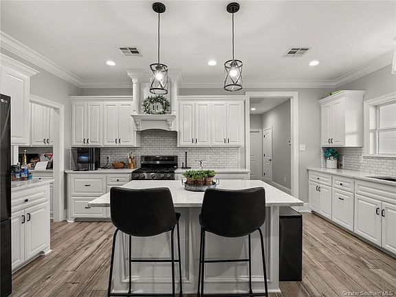 Stunning 3-year-old Acadian-style home nestled on 4.5 acres within South Beauregard school district, this home is designed for both comfort and entertaining. Step inside to discover an inviting open floor plan bathed in natural light, accented by beautiful light-colored finishes throughout. The spacious, functional kitchen is a chef's delight, complete with a walk-in pantry, a coffee/wet bar area, and plenty of storage. Retreat to the expansive owner's suite, featuring a luxurious tiled shower, a soaking tub, and ample space for relaxation. Each of the large bedrooms offers comfort and privacy, making this home perfect for family living. Outside, the entertainer's covered back patio is ideal for hosting gatherings or simply enjoying the serene surroundings. Call for your tour!