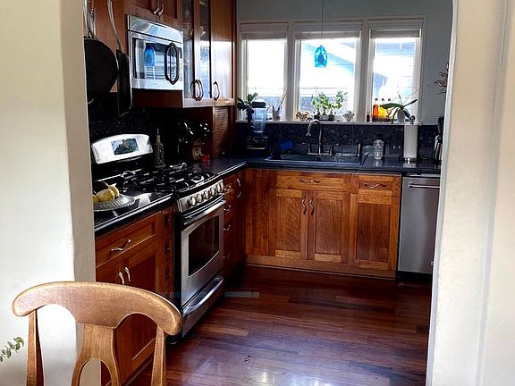 Beautiful 3 bedroom, 2 bath Craftsman home with separate office and garage in Mission Canyon and Roosevelt School District. Perfect for a remote office and home schooling. Fully fenced in yard (6-8ft redwood) and automated gate makes it incredibly private and safe for children to explore the expansive yard. Garage and 75 feet of driveway, within the fenced property, provide secure, off-street parking for up to 4 cars or other recreational vehicles. The house has a front lawn and backyard with multiple outdoor entertainment areas, including a large roof deck and gazebo sitting area, providing seamless indoor / outdoor living. Gorgeous archways, Tigerwood floors, unique light fixtures, porcelain tub, and sea glass tiles add to the houses warmth and character. All bedrooms, living room and office have ceiling fans and house has central heating. Kitchen was fully remodeled with pullout shelves, double oven and ample storage. There are fig, cherimoya, orange, avocado, tangerine, and nectarine trees on the property and a bed for planting veggies and herbs. A cooks dream! Walking distance to the Natural History Museum, Rocky Nook Park, Rose Garden and the Mission. House will be rented unfurnished. Tenants responsible for all utilities. Landlord to provide gardener. Last months rent due upon signing. First months rent and security deposit equal to one months rent due upon occupancy. No smoking allowed. Small pets ok.