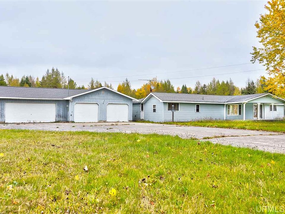 This Gulliver home sits just off a county road on nearly 10 acres of land in a peaceful setting. The 1981 mobile home has a foundation under it and vinyl siding all around including the spacious master bedroom stick built addition. Roomy full bath with ample storage. Convenient laundry room and half bath just inside the back door. Nice sized closets in both bedrooms. Plenty of kitchen cabinets and center baking island. Two sets of sliding glass doors bring in lots of natural light in the kitchen/dining area. The remains of a well loved garden are waiting for you to bring it back to life! Sit on your covered porch and watch the world go by, or take a hike in the mixed hardwoods out back. The three stall garage makes room for a couple vehicles and toys, too. Would make a great home base for Upper Peninsula adventures, starter home, or single story living for your retirement years.