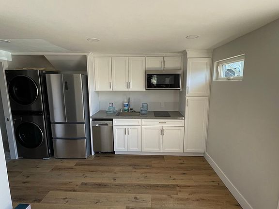 All new appliances, including refrigerator, induction cooktop, convection microwave, dishwasher, and stacked laundry center. Hardwood flooring throughout the unit, all lighting uses energy-saving LED technology, and updated double-paned windows keep the unit quiet and comfortable inside. A/C and Heat are provided by an efficient mini-split system, allowing precise temperature control of the kitchen/living area and the bedroom.