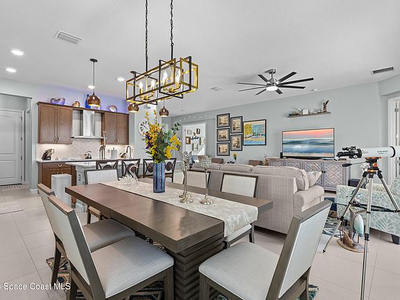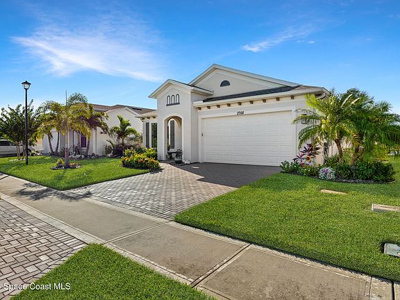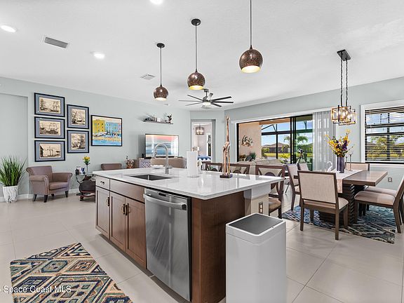 Discover luxury and tranquility at 2768 Millennium Circle, a stunning partially furnished lakefront retreat in Viera's premier 55+ Bridgewater community. This 2BR/2BA + bonus home (built 2020, upgraded 2024) showcases open-concept living, gorgeous sunset lake views, and a chef's kitchen with a brand-new refrigerator. 2024 enhancements include a screened saltwater pool with a paver deck, smart app controls, waterfall, jacuzzi, and heating system; all-new professional tropical landscaping; interior and exterior paint and lighting; irrigation system; and epoxy-coated garage floor. The designer primary suite features an upgraded fully tiled shower and custom walk-in closet. Stylish upgrades and partial furnishings make this home truly turnkey. Bridgewater residents enjoy resort-style living with pickleball, tennis, clubhouse, fitness center, theater, and a sparkling resort style community pool.