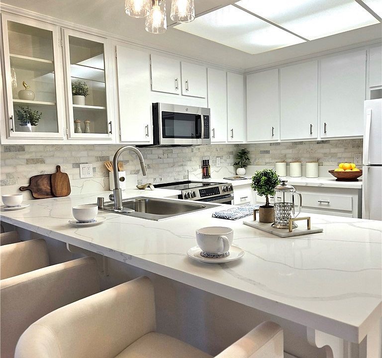 Welcome to your practically Brand New Fully Remodeled Home! One of the Largest and Rarest Floorplans in the area sprawling over 2,000 Sq Ft of open living space! Extended Driveway and lovely brick walkway to your Double Door Front Entry. The inside offers a completely bright and open floor plan with multiple large living areas that are easily connected to all rooms for convenient access. All NEW Interior and Exterior Paint, Indoor & Outdoor Lighting with new Celling Fans, Double Pane Windows and Sliders, Completely Remodeled Bathrooms with New Vanities, Showers, Shower Doors and oversized Mirrors. All NEW KITCHEN with Quartz Countertops, HONED MARBLE Backsplash, Glass Door Cabinetry with Large Pantry, Top of the line Stainless Steel GE Appliances including Flat Top Stove, Over the Range Microwave, Dishwasher, Sink and Refrigerator all included. Your gorgeous kitchen opens up to a huge living/entertainment area with a fireplace, light oak flooring, Skylights, Plantation Shutters, and beautiful French doors that open into your huge master suite with custom built ins inside the closets and plenty of storage and shoe racks. The secondary bedroom across the hall can serve as a second ensuite with its own private entry to the hall bathroom through a pocket door, making it adaptable to multiple living situations. 3rd room can be used as an extra bedroom or office with a dedicated hall closet right outside the room. Last but not least is the gorgeous sunroom with double pane windows all the way around, French door and a slider to the gorgeous brick patio and walkways that wrap all the way around the home adding to its charm. The large backyard is your own private oasis with a huge Alumawood patio cover extending the width of the house, a park like setting with pebble rocks, mini bridges, matured landscaping, fencing and fountains so you can truly enjoy all this yard has to offer. Other features include a new and upgraded garage door motor, insulated garage door with tinted windows and a recently replaced HVAC system. Truly a great value for this much house, this exact floorplan doesn't come around too often and is located on a Massive Corner Lot making it an even better opportunity! Come experience Finer Living with all the space you could want with Beautiful Views in Sun City Civic's 55+ Community in Menifee with Low Taxes and Low HOA!