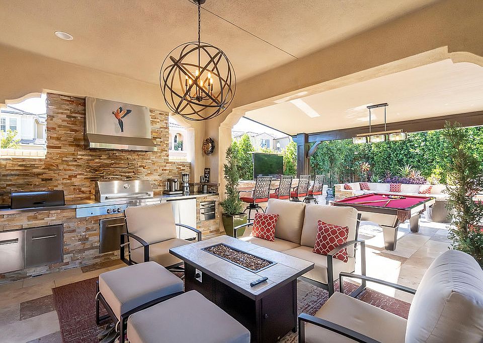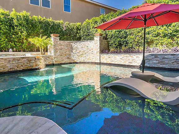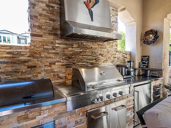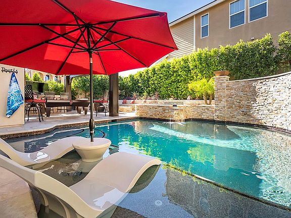 LUXURIOUS RESORT STYLE POOL HOME situated on a cul-de-sac in the highly sought-after gated community at The Heights at Five Knolls. This 4 bedroom, 3.5 bath w/ spacious loft dream home boasts immaculate interior which includes: high ceilings, wood plank tile flooring, downstairs suite, large covered deck, recessed lighting throughout, three-bay garage, electrical vehicle charging outlet, 10KVA solar sun power system, tankless water heater, and spacious built-in closets. As you enter this stunning home, there is a beautiful and spacious living room w/ gorgeous designer paint, window treatments, a stack stone decorative wall, and a large downstairs suite w/ full bath, perfect for guests. Chef's dream kitchen offers a gas range with 6 burners, a gas oven, an additional built-in wall oven, a large granite center island, custom backsplash, a butlers walk-in pantry, and a built-in wine fridge. The large cozy family room with a floor-to-ceiling fireplace feature, as well as beautiful window treatments, leads to an entertainer's resort dream backyard. Features include a resort-style pool with 4 waterfalls and 3 fire features, a granite bar (room for 8), pop-up TV, high-end stainless-steel appliances, built-in bbq, Traeger smoker, refrigerator, Sunbrella curtains, and beautiful stack stone throughout. The upstairs features a great loft, two extra-large bedrooms, a beautiful master suite w/ a spacious balcony, and a floor to ceiling fireplace feature wall. The Master bathroom offers Italian floors and bath tile with his and hers custom walk-in closets, dual sinks, luxurious soaking tub, and upgraded walk-in shower. The Clubhouse features a pool, spa, fire pit, TVs, and is close to Golden Valley Park w/ playground and dog park. This gorgeous and model-perfect home will stun you with its dazzling interior finishes. MUST SEE!!!