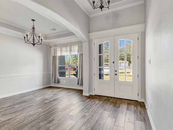 Looking for your forever home, well this is it! You will love this custom home in a highly desirable acreage community. The home features 4 bedrooms, 3 baths, 2 car garage, 2 possible primary bedrooms. The kitchen features custom cabinetry, a huge island, with granite counters and stainless appliances with double ovens, stainless farm sink. The home features high ceilings, modern fixtures, crown molding and wood tile flooring. Large covered back patio that is great for entertaining and a future outdoor oasis. There is ample space for a pool and a storage building as well. Don't miss out on this wonderful opportunity!