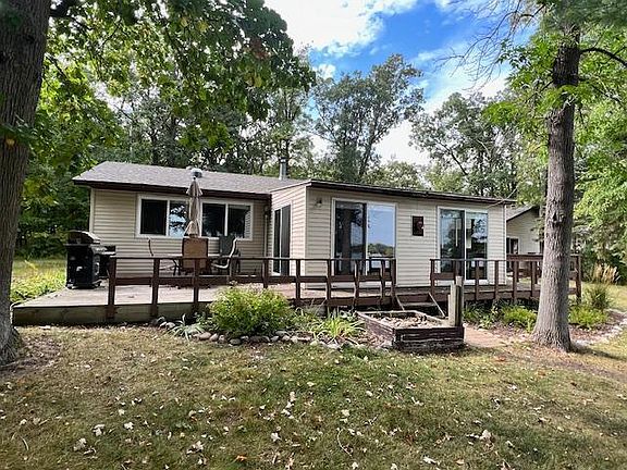 asy living on peaceful, private, Round Lake. Walking distance to Corner Store, Beach Bums and Zorbas! Remodeled thru out, LVP flooring, gourmet kitchen, double oven, center island with cooktop, solid surface countertops. Open floor plan with two free standing gas FP and T&G pine family room facing the lake. Lg wooded lot, parking for RV, rip rap shore with sand beach area. 2 car gar finished as a game room with patio door to lake. Wonderful space for friends and family fun summer and winter.