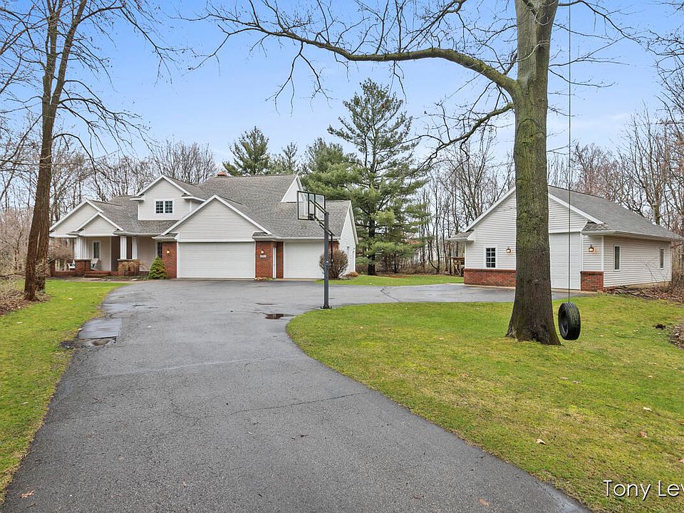 Offer received! Seller instructs broker to hold all offers until 4/15/2023 @ 5pm. Major price adjustment of 45k making this an extreme value, better hurry! Experienced high quality custom home builders own home. Prime location set way off of the road. Private w/pines, woods and deer. Kent trails adjacent to property w/gate to trail. 24x32 matching + sided out building that is finished with attic, 9' door, 220 electric, heater. Well maintained and updated with pride of ownership. Complete kitchen update in 2018 with custom built cabinets w/soft close. Many custom features including spice rack, organizer center w/usb ports, trash, recycle, hidden cabinet w/false panel for valuables, utensil drawer, quartz and granite w/subway tile backsplash. Recently redone back entry mudroom w/lockers, main floor laundry, updated 1/2 bath. Lots of fresh paint + flooring. Roof new Dec 2021 (tear off) Exterior painted 2 years ago. Well designed floor plan w/2 story great room w/great views of gorgeous lot, 14' ceilings + 2 way fireplace. Main floor master bedroom suite, w/whirlpool, tile shower, walk in closet w/quality built ins + closet system. French doors to main floor office w/custom cabinets, cupboards, and crown molding. Dining area w/2 way fireplace door to large composite deck, custom built in seating bench very sharply updated w/Montana wood. All bedrooms up are very large, all w/double closets. Theater room w/insulated walls + ceilings, custom table + seating. 7.1 surround sound system playhouse in lower daylight level. Outside is country in the city. 2.51 acres, long paved driveway, apple trees, blueberry bushes, perenials, japanese maple, large deck w/top of the line trex decking, 18x34 heated ag pool, woodshed, firepit, house has beautiful large covered porch. Lots of custom features including maple hardwood floors, 6 panel doors, auxiliary wood burner connected to ducts, huge fenced in garden, fenced section for dogs. Water quality is 1 in 10,000 per water contractor, UG Sprinkling, Huge 3 1/2 stall garage that fits 4 cars. H+C water drain and finished, insulated, attic w/stairs, cupboards and lots of storage. Stairs going to basement. Wired for generator. 200 amp electric. Room desc: Foyer, office, mbr suite, gr, da, kitchen, 1/2 ba, mfu, mudroom, up 3 br, ba dn fr, 5th br, ba, theater room, mechanicals + storage