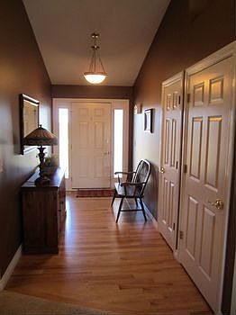 Beautiful home in like new condition backing up to Sandy Ridge golf course. This home has a 3 season porch off the kitchen area. Corian kitchen. Fireplace in living room with vaulted ceilings. All appliances stay. Master suite with jet tub and separate shower. Full basement with egress. 3 car garage. Professionally landscaped. City water at road.