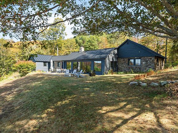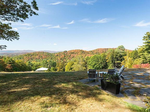 Breathtaking long range views of Killington Peak and Saskadena 6 greet you as you wind your way up to your private slice of Heaven. Situated on nearly 91 acres, this spectacular property offers everything, from the views and open fields to the saltwater pool tucked nicely into the hillside to the trails running throughout the woods and a lovely stone patio aligned perfectly for evening sunsets. Inside, nearly every aspect of the house has been updated. There are four bedrooms including a primary with ensuite bath and two additional full baths. The fully renovated kitchen is open to the dining area which leads to the living room with new floor to ceiling windows overlooking the Pomfret hills and mountains beyond. A stone fireplace anchors the living room, complete with a new insert and chimney liner. Between mini splits in all rooms and radiant floor heat in select areas, this house is fossil fuel free and derives most of its power from 61 onsite solar panels. Two Tesla power walls provide backup in the event of a grid outage. Separate from the main house is a two room cottage that was completely redone and currently set up as a guest bedroom and office, with a half bath inside and a seasonal outdoor shower on the deck. A short trek up through the woods takes you to an open meadow with a small cabin awaiting some finishing touches. Located privately atop the coveted Cloudland neighborhood just minutes from downtown Woodstock and Saskadena 6, this is a must see property.