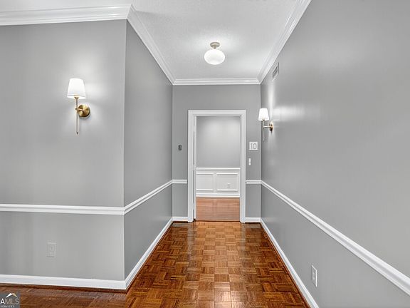 A Rare Opportunity - Below Market Value in BUCKHEAD! This is your chance to own and experience Luxury Living in the Heart of Buckhead, Welcome to The Carlyle - Buckhead's Hidden Gem! This beautiful fully renovated top floor condo offers the elegance and space of a single-family home with the convenience of luxury condo living. Spanning approximately 2,570 sq ft, this 2-bedroom, 2.5-bath residence features two spacious private primary suites, each with large walk-in closets and private baths. Step out of the 5th floor semi private lobby, and into a formal entry/foyer with wainscoting and crown molding, leading to a central gallery hallway perfect for showcasing art. The kitchen has tons of natural light and is a showstopper that gives you a traditional feel with all the modern conveniences, like quartz countertops, antique white cabinetry, stainless steel appliances, breakfast bar, and a custom coffee/wine bar with beverage fridge. The formal dining room with corner built-ins flows seamlessly into an oversized living room ideal for entertaining. A cozy den with bookshelves and a fireplace, offers the perfect place to read, watch TV, or even work from home. Enjoy morning coffee or evening sunsets in the sunroom with floor-to-ceiling windows and Midtown/Downtown views. Additional highlights include new ebony hardwood floors, a powder room for guests, in-unit laundry, 2 assigned parking spaces (1 covered), and a separate storage unit. Located in a gated, boutique community with only 2 units per floor, The Carlyle offers unmatched privacy and tranquility in the heart of Buckhead-just steps from the Peachtree Farmers Market, Duck Pond Park, top dining, shopping, and medical centers. Don't miss this rare opportunity to own this spacious Buckhead condo!