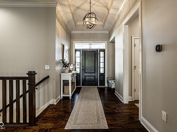 Situated on a cul-de-sac in Westfield's coveted Oak Manor community, this custom ranch residence offers a blend of timeless design and modern comfort. Over 4,000 sq ft with 5 bedrooms and 4 baths. Elegant main level features 10' ceilings, hardwood floors, and a gourmet kitchen open to the great room and dining area. Primary suite plus 2 bedrooms on the main. Finished lower level with daylight windows, wet bar, 2 guest bedrooms, and full bath. Outdoor living includes a screened lanai with TV + fireplace, a new Trex deck, fenced yard, irrigation, and professional landscaping. Side-load 3-car garage. Close to parks, trails, dining, and top-rated schools.