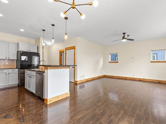 This immaculate 4-bedroom, 3-bathroom townhome in Bozeman’s charming Baxter Square neighborhood is not only the most affordable 4-bedroom home in the area but also a great investment opportunity. Offering a prime location and modern conveniences, this property is a gem for both homeowners and investors. The spacious interior features 9-foot ceilings and engineered hardwood flooring, creating an open and welcoming environment. The generous primary suite serves as a private retreat, complete with a fully upgraded bathroom featuring a large, full-tile shower, dual sinks, and smart touchscreen mirrors. The gourmet kitchen shines with granite countertops, under-cabinet lighting, and a brand new Samsung mega capacity smart refrigerator. A unique highlight is the oversized 1-car garage with a stain-resistant floor covering, allowing for flexible use—whether it’s storage, a home gym, or even parking two smaller cars in tandem. The low-maintenance, fenced backyard with solar exterior lighting and underground sprinklers offers a perfect outdoor retreat with stunning Bridger Mountain views.
