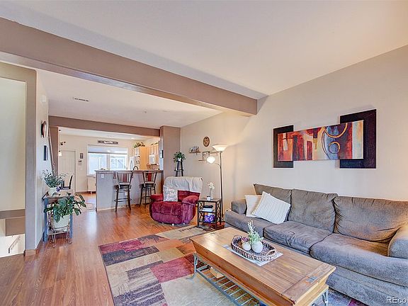 Welcome home to your cozy Littleton, low maintenance home! This home is in the popular and sought after Riverwalk community, complete with resort style clubhouse, fitness center, and pool and spa. Enter this unit off the ground level through the front door or your tandem large two car garage and head up to the main level. The main level features a family room with gas fireplace and direct access to the large east facing balcony overlooking the greenbelt in between buildings, perfect for enjoying your morning coffee. Off the family room is the huge kitchen with tons of countertop space and dining area. Don’t forget about the included appliances, including stove, dishwasher, over stove microwave, and refrigerator. The kitchen is finished off with a large pantry. Head upstairs and you’ll find a large primary bedroom, complete with multiple closets and the primary bathroom. The primary bath features a large walk-in shower and double sinks. The upper level is finished off with a second large bedroom, additional full bathroom and upper level included washer and dryer. Be sure to visit the community clubhouse and fitness center during your showing, which will make you feel like you're staying at a 5-star resort. The clubhouse is features several sitting areas, meeting areas, and even a dance floor!The fitness center is packed with equipment and larger than many nearby gyms. When you’re not enjoying all of the community provided amenities, you have easy access to nearby shopping, restaurants, and Denver with access to Santa Fe in minutes. This cozy unit features all the amenities one could ask for and truly lives like a townhome! Schedule your private showing today to call this great unit, home!