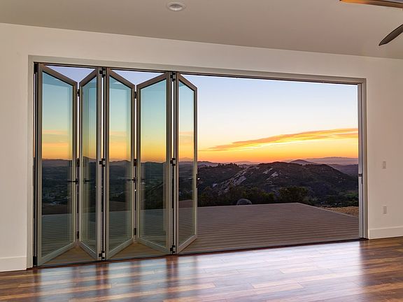 This spacious, light & bright new home has "million dollar views" from every room and is on 14 acres. The single story home features 4 bdrms (2 master suites), 3 bths. Above the garage is the 2nd master suite (19x15) - could also be guest quarters, man-cave or office area. Spacious living room has a bi-fold door that opens up to the deck. Stunning views overlooking Woods Valley Golf Course and Palomar Mtn. No HOA or Mello Roos fees. Large addition to deck, beautiful in ground pool. 35 solar panels 3 additional storage units in sight, chicken coop, fully fences 2 acre area, automatic gate, incoming road alarms, large cleared in fenced yard