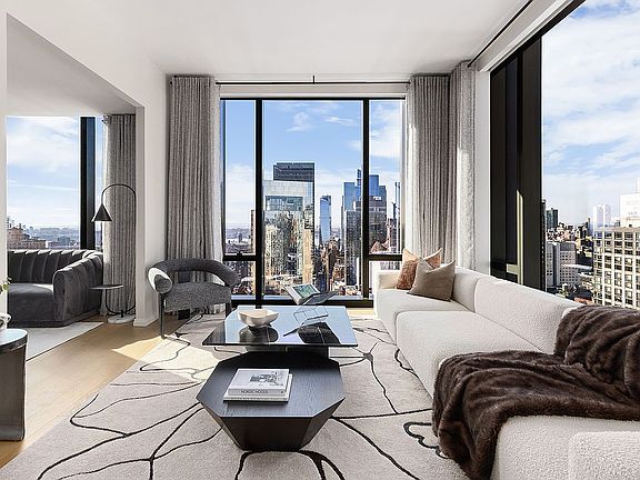 Designed by internationally acclaimed architect Rafael Vi oly, with luxuriously appointed interiors by Jeffrey Beers International, this 55-story tower offers 130 extraordinary 1-3 BR residences showcasing unbeatable views of the Manhattan skyline at a distinguished Fifth Avenue address. Spanning over 7,000 SF, the amenity suite boasts a furnished terrace, full-service staff, curated library lounge, windowed state-of-the-art fitness center with a yoga studio and spa/steam rooms, a private dining room with catering kitchen, games lounge, children's playroom, and a media and entertaining library.