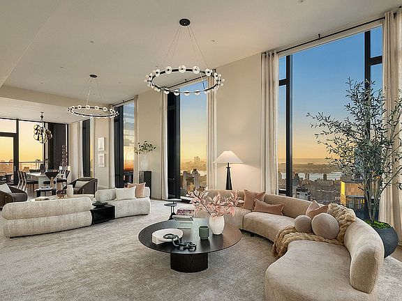 Penthouse 55 at 277 Fifth Avenue is a spectacular full-floor, four-bedroom residence spanning 4,520 interior SF and 780 exterior SF with unparalleled views across the city and beyond. Accessed by a keyed elevator, Penthouse 55 opens up into an expansive, 53’ x 21’ Great Room with sweeping views of the Hudson River, framed by floor-to-ceiling windows. Take in dazzling sunsets from the adjacent 75-foot-long private loggia.