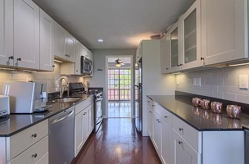 Beautiful "POTTERY BARN" STYLE unit in desirable townhouse style. Everything a buyer could ask for! STAINLESS STEEL appliances, gorgeous black GRANITE countertops, updated newer white kitchen cabinets and stylish SUBWAY TILE! Beautiful hardwood floor thoughout, professionally cleaned and waxed. Central Air. One car garage. Two stylish updated bathrooms. Lovely private deck. Tennis courts, clubhouse and full gym. Professionally managed. Condo Fee ($323) includes: water, trash removal, snow removal Unit located at front of complex for ease of entrance and exit.
