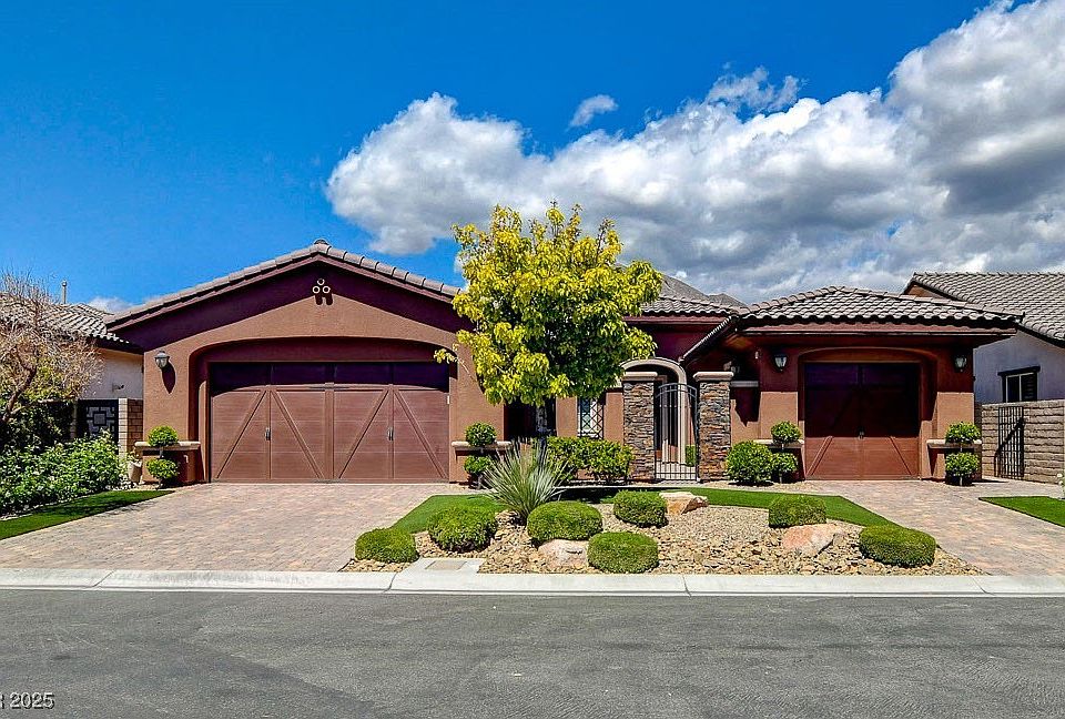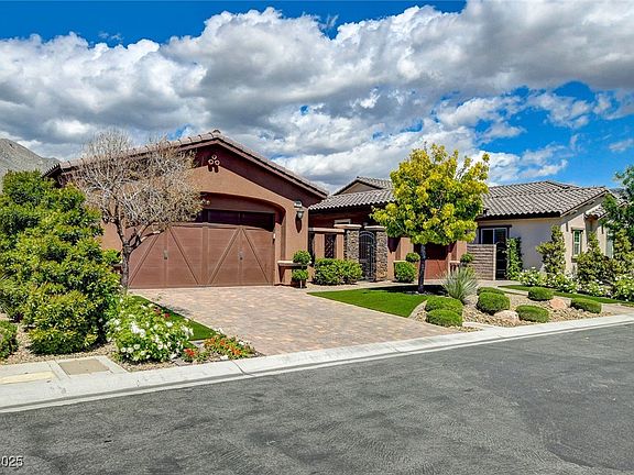 Stunning single-story luxury home located in a prestigious gated Summerlin community. This home offers a spacious 3-car garage that’s pre-wired for an EV charger, inviting courtyard entry, and high-end finishes throughout. The chef’s kitchen opens to the living room and features JennAir double ovens, a large gas cooktop, and generous counter space. The living room is accented with coffered ceilings, custom built-ins, and a large pocket slider that seamlessly connects indoor and outdoor living. Step outside to an entertainer’s dream backyard complete with a covered patio, outdoor kitchen, fire pit, water feature, and multiple seating areas. The primary suite feels like a private retreat, showcasing a spa-inspired bathroom with dual sinks, an oversized shower, 2 separate walk-in closets with custom built-ins. Two additional bedrooms share a Jack-and-Jill bathroom, each offering ample space and comfort. This home blends elegance, functionality, and luxury living in the heart of Summerlin.