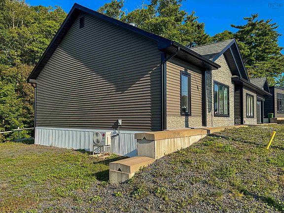 This beautifully designed 3-bedroom, 2-bathroom bungalow is located in the desirable LaHave Heights II in Bridgewater and offers the perfect blend of modern comfort and traditional charm. A formal entry with a walk-in closet welcomes you into the home and opens into a bright, spacious living room. The open-concept layout connects the kitchen and dining area in a functional flow that’s ideal for hosting family and friends or simply enjoying day-to-day living. The exterior makes a bold first impression with black windows, a black trim package, architectural peaks, and accent siding - design choices that give this home standout curb appeal. Inside, you’ll find a number of thoughtful upgrades, including 9' ceilings that enhance the airy feel of the space, granite countertops in the kitchen and bathrooms, and upgraded Maxx U-Tile in both bathrooms. The kitchen features white birch cabinetry paired with modern hardware, creating a clean and stylish look throughout. A mudroom with laundry room provides added convenience for everyday living. The total square footage of the home, including the attached garage, is 1,792 sq ft. Please note: due to the surface mount foundation, the garage is intended for storage only and is not suitable for vehicle parking, however it is possible for an engineered floor to be installed (included in asking price) which would allow vehicle storage. Rear deck, paved driveway and landscaping to be completed by vendor prior to closing. The site fee is $440/month.