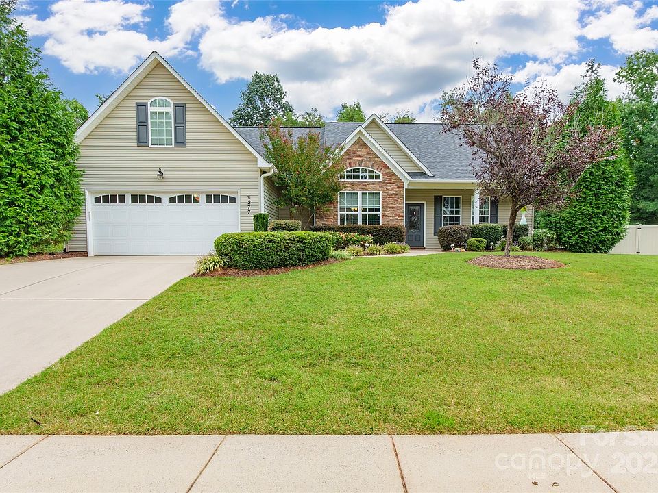 Welcome to this inviting split ranch home featuring an open layout with elegant archways, moldings, and high ceilings. The spacious great room is centered around a warm gas fireplace, while the vaulted formal dining room offers the perfect setting for gatherings. The front exterior with stone accents and covered front porch create beautiful curb appeal.