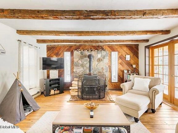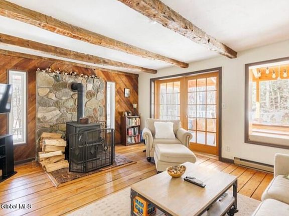 Nestled amidst 2.9 acres of lush, wooded tranquility with creek in the heart of Lake Luzerne, this enchanting 3 bed, 2 bath home offers the perfect blend of modern comfort and rustic charm. As you drive up the winding path, you're greeted by the beauty of nature and the promise of a serene lifestyle. Step inside to discover a warm and inviting living room, perfect for family gatherings or cozy nights by the fireplace. Natural light pours in through large windows, illuminating the space and highlighting the gleaming hardwood floors and modern kitchen. This home is not just a property; it's a chance to embrace the beauty of the Adirondacks while enjoying modern amenities and unique spaces including large sunroom perfect for entertaining and a even a bonus ''she shed'' space in the garage.