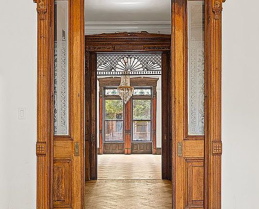 Behind the elegant brownstone facade, the home welcomes you with an expansive parlor floor featuring soaring ceilings, tall windows, original woodwork, and grand front, center, and rear parlors. These sun-filled rooms showcase the scale and architectural detail that make Bed-Stuy townhouses so desirable.