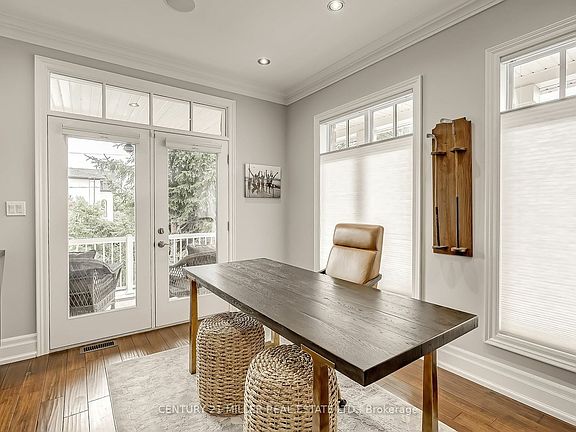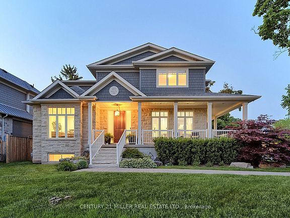 Thoughtful design + quality craftsmanship on all levels in this turn-key custom home. Impressive curb appeal w/cream limestone exterior + lush tiered gardens + wrap around porch. Detailed interior w/custom millwork, crown moulding, integrated smart audio + designer finishes. Private office with textured glass doors, oversized glazing + built-in credenzas. Well-appointed mudroom w/custom cabinetry + both garage + exterior access. Chefs kitchen w/an abundance of full-height cabinetry, organizational built-ins, integrated commercial grade appliances, central island + a mix of pebbled granite + concrete grey quartz countertops w/beveled edges. The dedicated dining is a smooth transition + the walk-in pantry offers ample storage. W/a wall of oversized glass panels and recessed cabinetry flanked by gas flamed wall sconces, the great room is an inviting lounge spot for friends + family. And the entertaining potential continues w/a custom beverage station + an expansive rear deck w/louvered BBQ cover enjoy all year round. Impressive primary with fitted walk-in + serene ensuite. The 3 additional bedrooms are well-equipped with generous closets and ensuite privileges. Expert craftsmanship carries through to the lower level with an HGTV designed space that has something for everyone. Wine cellar, wet bar, immaculate rec room with theatre surround sound + fireplace, gym + refined retro bath. Fully fenced + incredibly landscaped lot that includes multi-tiered Trex composite deck, expansive flat stone patio w/ stone-clad gas fire pit, flat grassy area + beautiful perennial framing gardens, the rear yard is a breeze to enjoy. Ideally located in Bronte, just a short walk to Brontes core + harbour w/local boutiques + wonderful restaurants. This home is turn-key and offers an incredible lifestyle opportunity.