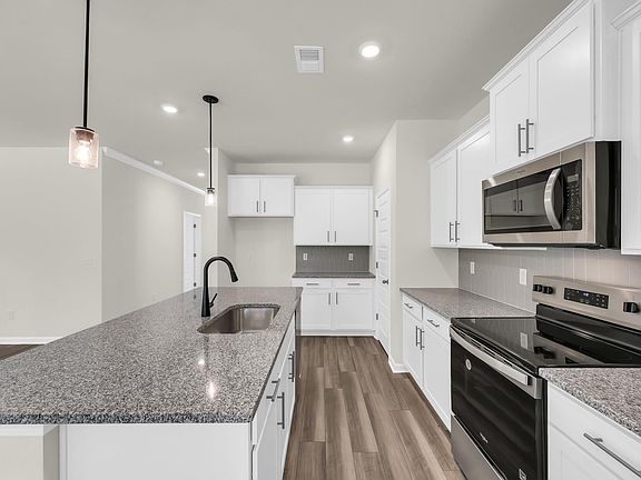 New contruction in Cottages at Roofs Pond with exterior HARDY PLANK siding! The Courtland II B floorplan with hardiplank exterior! This 4 bed, 2 bath single story home located on Lot 149, provides convenience with everything on one level. Luxury Vinyl Flooring throughout entire main floor living spaces and the kitchen and open concept living area provide plenty of space for entertaining and enjoying your home. The kitchen has ample storage with shaker cabinets, 3 CM quartz, stainless appliances with GAS range, upgraded kitchen faucet, island, tiled backsplash, and pantry. Enjoy the view of the flat back yard from the comfort of your covered porch. This home is under construction and therefore photos used are stock images and do not represent the actual finishes or color selections. Estimated completion 1/26. One-year builder workmanship warranty and 10-year structural warranty are included! The home is loaded with GreenSmart energy efficient features: HERS testing, tankless water heater, zoned energy efficient gas furnace and much, much more!Photos used are stock photos and may include optional upgrades. Disclaimer: CMLS has not reviewed and, therefore, does not endorse vendors who may appear in listings.