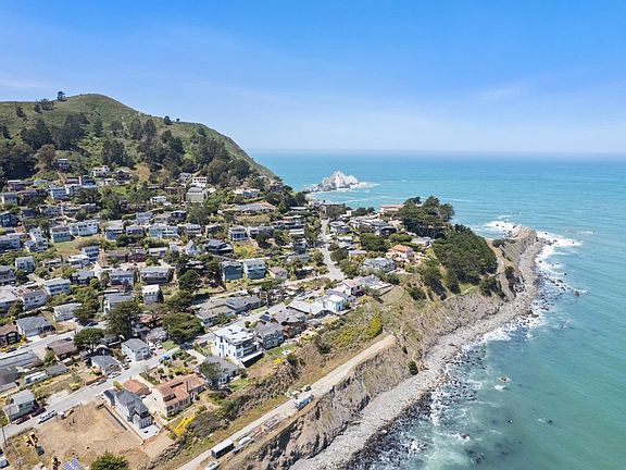Is life better at the beach? It is when you have a fantastic location on the bluffs overlooking the Pacific Ocean, Linda Mar Bay, and surfer's beach. Here's your chance to own a brand new custom home w/prime amenities minutes away. Improve your health at the beach as you surf and play and explore surrounding hiking trails. Every detail addressed w/beautiful wood flooring and the latest kitchen w/quartz covered countertops, Wolf Range, Sub-Zero Refrigerator, and substantial breakfast/entertainment island as the hub of the kitchen. The floor-to-ceiling large glass folding doors provide a seamless transition onto the backyard patio to hear the sounds of the sea as you overlook the Pacific ocean. Retreat to the second level primary bedroom w/cathedral ceiling and your own outdoor open and covered deck w/expansive ocean and mountain views, sure to calm the emotions and relieve stress. Each spa-like bathroom has designer features. A custom beach home you will love for many years to come.