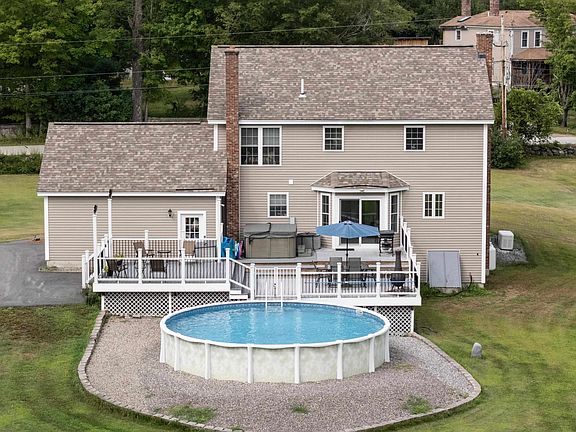 Move in ready, enjoy the holidays in your new home! Situated on 5+ acres abutting conservation land/walking trails, you will find this light and bright, Open Concept Colonial w/ farmers porch and attached oversized garage, large entertaining multi tier deck and pool, built by JH Spain! Maintenance free w/ vinyl siding & windows, 10 yr young roof, 2 yr new, Buderus boiler with alternative woodstove, and whole house generator! Luxurious primary suite w/ cathedral ceilings, private bath and walk in closet. Convenient first floor laundry. Finished family room or office in LL. Meticulous grounds, and pride of ownership demonstrated throughout! Central to Concord & Lakes Region in low tax Loudon! Turn the key, you are Home!
