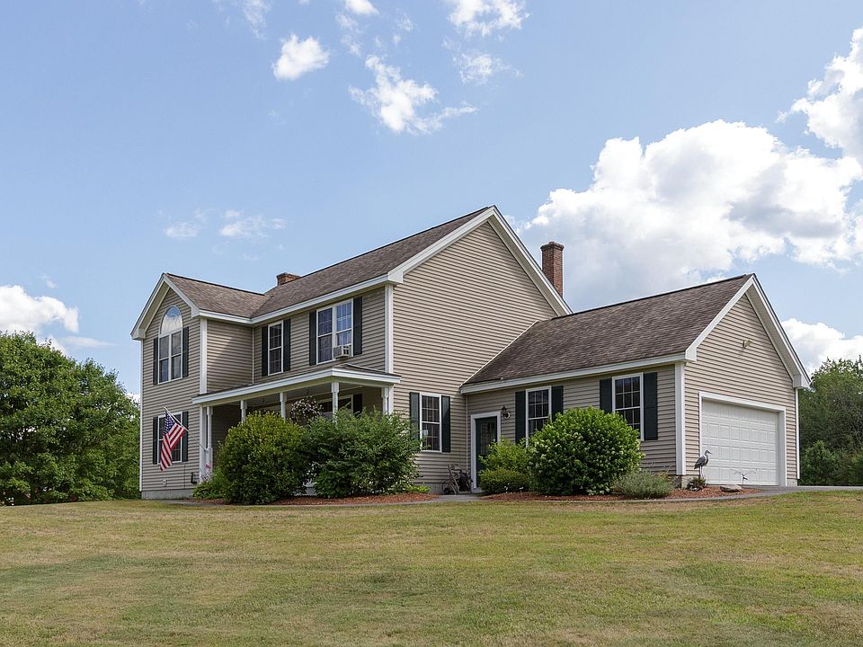 Situated on 5+ acres abutting conservation land/walking trails, you will find this light and bright, Open Concept Colonial w/ farmers porch and attached oversized garage, large entertaining multi tier deck and pool, built by JH Spain! Maintenance free w/ vinyl siding & windows, 10 yr young roof, 2 yr new, Buderus boiler with alternative woodstove, and whole house generator! Luxurious primary suite w/ cathedral ceilings, private bath and walk in closet. Convenient first floor laundry. Finished family room or office in LL. Meticulous grounds, and pride of ownership demonstrated throughout! Central to Concord & Lakes Region in low tax Loudon! Turn the key, you are Home!