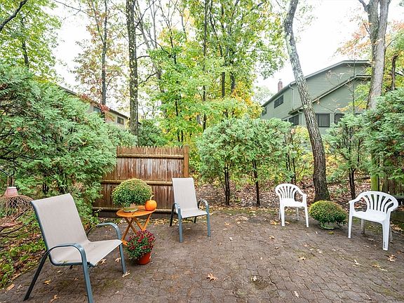 Seller to pay ALL 2026 special assessment! Impeccable and updated 2 bedroom condo with an extra room on main floor (den with closet). The tiled entryway leads into the impeccable hardwood floors in the living room, den, dining area and kitchen. The updated kitchen offers stainless steel appliances, granite countertops and white cabinetry w/ access to the exclusive use stone patio. The full bath is tiled. Hardwood stairs lead to the second floor. The primary suite has a ceiling fan, double closet, walk-in closet and full bath. The hallway has an updated 1/2 bath. There is an another bedroom with ceiling fan, a small reading nook in hallway finishes off the second floor. The lower level has a game room/family room as well as a laundry. There is access to the garage and outdoors. Renovations include lower level game room with mudroom 2021, windows and sliding door 2021, kitchen and baths.