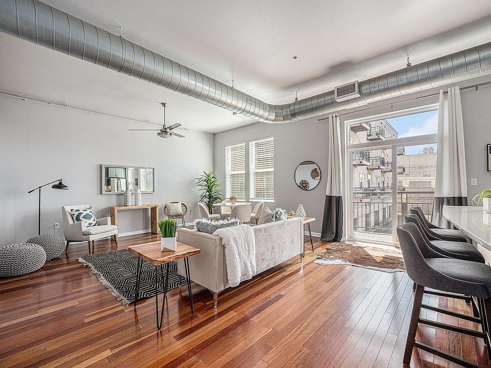 Experience urban living at its finest in this stylish 1-bedroom, 1-bath loft at 277 N Broadway Blvd #202 in Denver's vibrant Baker/South Broadway neighborhood with 1 reserved parking space. Featuring soaring ceilings, oversized windows, and hardwood floors throughout, this bright and airy unit blends industrial charm with modern finishes. The open-concept kitchen offers stainless steel appliances, stone countertops, and bar seatingperfect for entertaining.