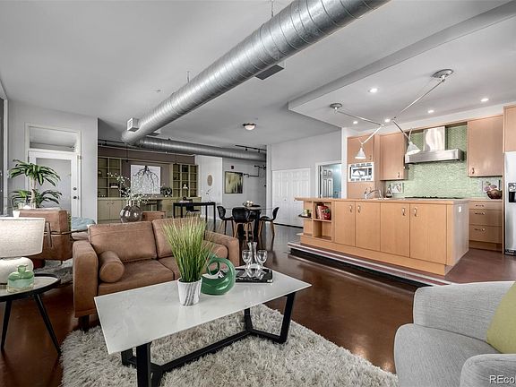 Best value in Baker! Spacious loft-style residence in a secured building on the Broadway corridor, offering an open layout, tall ceilings, concrete floors, exposed ductwork, and natural light. Features include a large living room, dining area, and a flex office with built-in shelving. The kitchen features an oversized island, a cooktop with a stainless steel hood, a mosaic backsplash, a built-in oven and microwave, and a newer stainless steel refrigerator. Fresh interior paint completed in October 2025. The private bedroom includes a walk-in closet and access to one of two full bathrooms. Enjoy two balconies with east and north-facing urban views. Additional highlights include in-unit laundry, a storage locker, one dedicated garage parking space, and pets allowed per HOA. Floor plan included. Close proximity to Huckleberry Roasters, Metropolis Coffee, Dailey Park, Cherry Creek Trail access, Yoga, restaurants, transit, Downtown Denver, I-25, and 6th Ave.