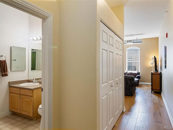 Top-floor living with nobody above you and sweeping mountain views set the stage for this spacious and charming urban loft. Step inside and feel the story unfold. Wide-plank hardwood floors and dramatic exposed ductwork stretch beneath soaring ceilings, creating an airy canvas that’s both modern and inviting. A gracious entryway leads past large closets and under brighter transom windows to the heart of the home. The kitchen is a culinary stage: deep granite counters, abundant maple cabinetry, a breakfast bar with pendant lighting, and a sleek mix of stainless and black appliances all come together to spark both style and practicality. Sunlight streams through an arched window, making this a space you’ll enjoy morning coffee or evening cocktails in. Every view here is a moment. Step through glass doors into your private balcony and savor elevated sights of the skyline and big Colorado skies. This is the top floor, offering peace of mind with no footsteps overhead, just the quiet calm of your own retreat. Tucked just off the main living area is a cozy and inviting bedroom, softened by carpet underfoot and cooled by a ceiling fan above. A chic barn door reveals a walk-in closet complete with built-in shelves, creating a serene nook for organization and style. Across the hall, a full bath invites with a soaking tub, tile flooring, and an expansive vanity—perfect for unwinding or starting your day refreshed. A cleverly hidden closet houses a stacked washer/dryer and efficient central HVAC system, blending utility with seamless design. This location puts everything within reach. Enjoy dining at Postino and Punch Bowl Social, along with walkable access to cafes, coffee shops, local shops, grocery options, and everyday conveniences. Rare for the area, this home also includes two deeded parking spaces: one in a secured garage and one off-street. These provide flexibility and peace of mind in a vibrant, sought-after neighborhood.