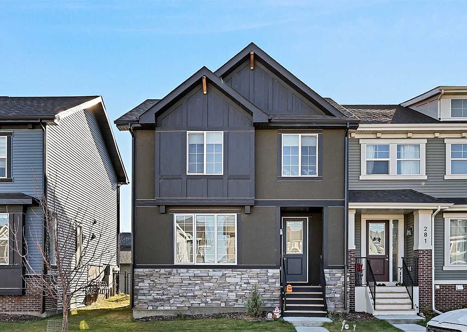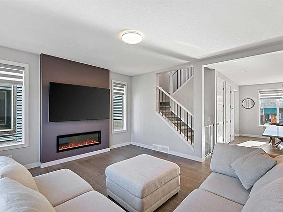LIVE IN A LAKE COMMUNITY | NO CONDO FEES | DOUBLE DETACHED GARAGE | SOUTH-FACING BACKYARD Looking to live in a lake community? This is your opportunity to enjoy everything Chestermere has to offer! Ideally located just minutes from schools, the lake, shopping, ponds, dog park, transit, pathways, and quick access to Stoney Trail, this modern 1542 sq ft home is move-in ready. Step inside and be impressed by the chef’s kitchen, featuring upgraded stainless-steel appliances, white shaker-style cabinet doors, quartz countertops, a custom full-height tile backsplash, and a sleek undermount black granite sink. The open-concept main floor features 9' ceilings, upgraded wide-plank hardwood flooring, a spacious living room, a dining area, and a convenient 2-piece bath. Upstairs, you’ll find a convenient laundry room, three bright bedrooms, each with a generous closet. The primary retreat offers a walk-in closet and a private 4-piece ensuite for your comfort. Your private south-facing backyard is designed for year-round enjoyment, featuring a 10’ x 8’ wood deck, a chain-link-fenced yard, and a newer double-detached garage. The charming front covered entry welcomes guests, and the stucco exterior adds curb appeal. Additional features include: a high-efficiency furnace, modern neutral décor, and stylish finishes throughout. This is the perfect opportunity to own in Chestermere with no condo fees and all the lifestyle benefits of a lake community. Don’t wait—call your friendly REALTOR® today to book your private showing!