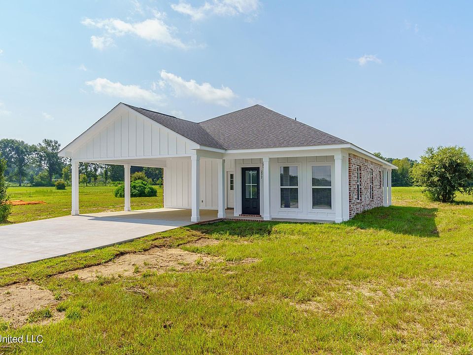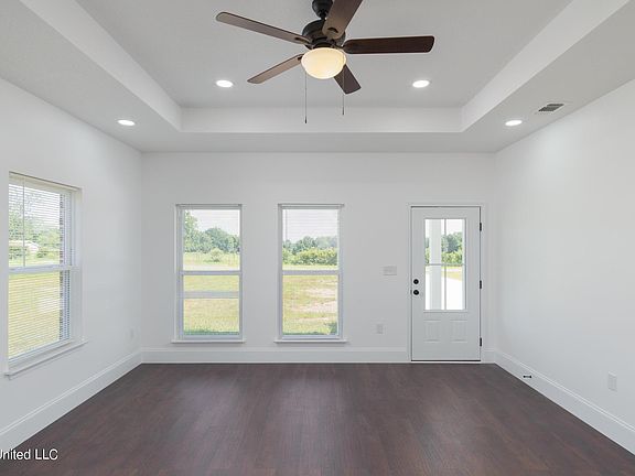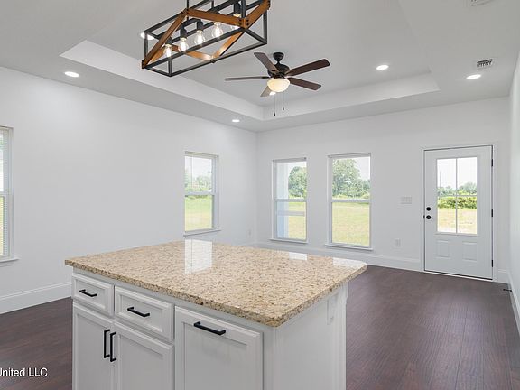 This new construction 3-bedroom, 2-bath home provides 1540 sq. ft. of living space on a 0.84-acre lot. The interior includes granite countertops in the kitchen and bathrooms, a spacious walk in pantry, modern light fixtures, and a large walk in closet in the primary suite. Elegant tray ceilings and large baseboards enhance the home's design. Extra insulation throughout the walls provides energy efficiency and ensures effective noise cancellation. Recessed lighting and 9-foot ceilings add to the bright and spacious feel. Experience the perfect balance of privacy and convenience with this home, located less than five minutes from downtown Lucedale. You'll enjoy easy access to schools, shopping, restaurants, and more!
