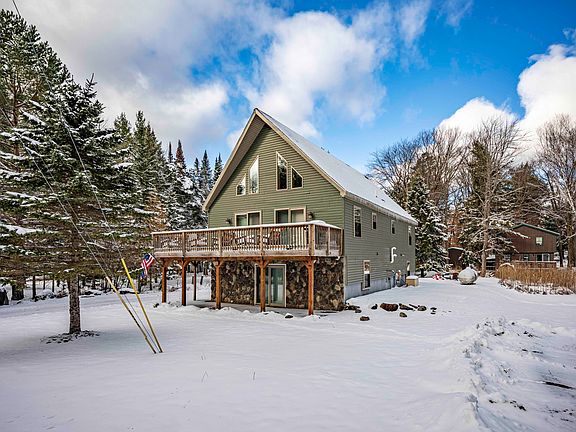 This beautifully renovated 3-bedroom, 3-bath chalet is offered turnkey, currently operating as a successful Airbnb just minutes from the village of Old Forge. The open-concept interior showcases Adirondack charm with knotty pine walls, log interior railings, and tasteful décor throughout. Upstairs, the master suite features an adjoining loft, while the main living areas boast modern, rustic finishes that appeal to guests year-round. The walkout basement is ideal for entertaining, with a custom bar, TV room, a brand-new full bathroom and direct access to the heated garage. Recent upgrades include all new windows and doors, new siding, a tankless hot water heater, new garage heater, fully updated electrical system, and a full-house standby generator for peace of mind. Outside, enjoy the second-story front porch, a level backyard with a fire pit area, and a spacious new shed with power. Whether you're looking for an Adirondack getaway or an income-generating property, this turnkey chalet offers it all. Can only be viewed between tenants. Total Taxes $3413.68