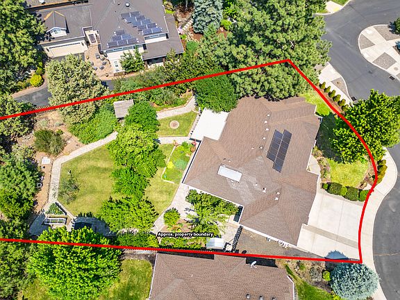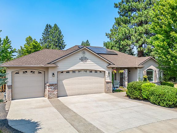 Hollow Pine Estates SINGLE LEVEL home on .38 acres with a PARKLIKE setting and a 3-CAR GARAGE! Enjoy the quail and other birds in this stunning PRIVATE fenced backyard with a covered patio, garden beds, paver walkways, fruit trees & 2 sheds. Beautiful home with hardwood floors in the great room w/gas fireplace, formal dining room, office/den with French doors and the kitchen/dining area. Kitchen has solid surface counters, newer stainless-steel appliances and bar seating. Large Primary suite is separate from the guest bedrooms. Primary bath has dual sinks, jetted tub, walk-in shower and 2 walk-in closets. Energy efficient home with SOLAR PANELS, solar hot water system and (Level 2) ELECTRIC CAR CHARGER. Since ownership in 2021, Seller has added gutter guards, roof on back patio, many exterior electrical outlets, 3 ceiling fans, interior paint (2021), new toilets and all new kitchen appliances. Close to shopping, St. Charles Hospital and medical offices.