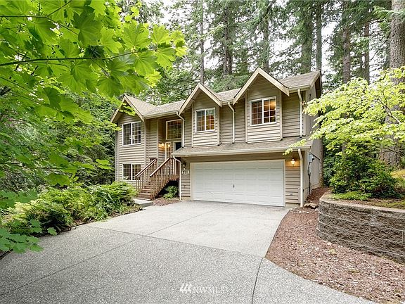 Fantastic split entry 3 bed, two and a half bath nestled in the woods.You'll love the Serene forested setting, level driveway, abundant wildlife, & versatile floor plan. Upstairs features 3 bedrm 2 bath living rm and kitchen, downstairs includes a family rm half bath laundry rm and two car garage. Mstr Suite features spacious WI Closet and bath.Back of the house looks out onto a forested Hillside, you will love the privacy and all of the amenities that Sudden Valley has to offer.Welcome home.
