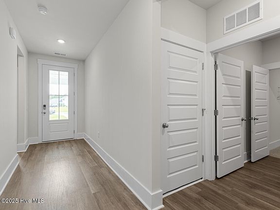 Welcome to Hubert's newest neighborhood, Surfside Landing! Located just 10 minutes from the coastal town of Swansboro and 7 minutes to the TOP Camp Lejeune Gate. This Bradford floorplan is a charming single-story home situated in a cozy culdesac, It combines style and convenience! Its open floor plan creates a spacious and airy atmosphere, featuring three bedrooms and two bathrooms. Inside, the inviting foyer leads to an open concept living area, perfect for relaxation and entertaining. The chef's kitchen, with modern appliances, a walk-in pantry, and a large center island, is ideal for cooking and casual dining. The primary suite offers an en-suite bathroom and a large walk-in closet, while two additional bedrooms in the hall provide versatility. The covered patio enhances the seamless indoor-outdoor flow, making the Bradford a perfect blend of comfort and style. Throughout the home, Luxury Vinyl Plank (LVP) flooring and stain-resistant carpets offer durability. Additional conveniences include a two-car garage, and the integrated Home Is Connected® Smart Home Technology enhances security and convenience with features like a video doorbell, smart lighting, and a touchscreen interface, making this home not only beautiful but also equipped for modern living.