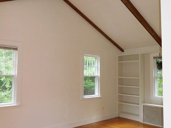 Recently updated early 20th century cottage on large wooded lot (3.5 acres) with ample parking and close to shopping and public transportation. Amenities include: First floor with hardwood throughout, new gas stove, new shower, cathedral ceiling in living room with built-in bookshelves, food pantry, generous-sized bedroom closet. Spiral staircase to lower floor: Fully-carpeted lower floor, free-standing fireplace, laundry room with washer-dryer, built-in office area and separate bar area with ample storage. Gas hot water and heat. Private deck overlooking wooded backyard, Large, heavy-duty storage shelter offers plenty of outdoor storage. No smoking. Tenant responsible for yard maintenance (lawn mowing) and snow removal; rent can be adjusted to cover these costs, if tenant desires.