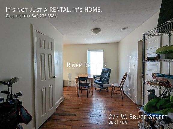 This 8 bedroom, 4 bath house is seperated into 3 apartments. The house features original hardwood floors, 3 bathrooms, 3 kitchens, air conditioning upstairs, 3 exterior entrances, and tons of space. The large front porch is perfect for relaxing. Off street parking with access to Route 42. The house is walking distance to Memorial Hall, JMU Campus, and very close to downtown. The house is situated on the corner of W. Bruce and Route 42. Come take a tour today and make this your next home!